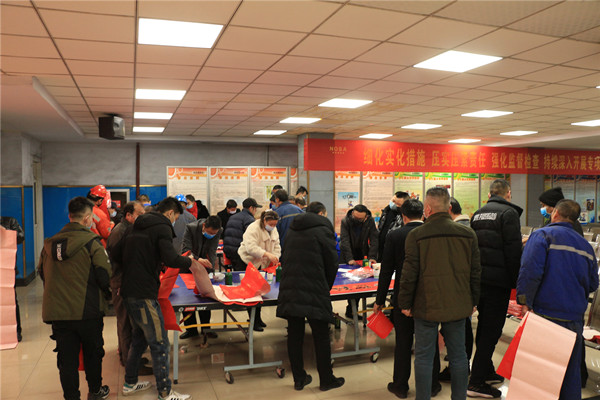 2月11日,大年三十上午,采掘區(qū)隊樓里格外熱鬧,職工擦拭門楣、架梯子、看高低、遞膠帶、貼春聯(lián),映襯的區(qū)隊樓里火紅一片。大家拱手互道新年好,喜慶幸福洋溢在每個人的臉上。礦區(qū)大門“瑞雪鋪煤城兆礦區(qū)和諧興旺、寒梅映礦山報煤海宏圖大展”的對聯(lián),格外鮮艷醒目,礦山春來早,奮斗正當時。