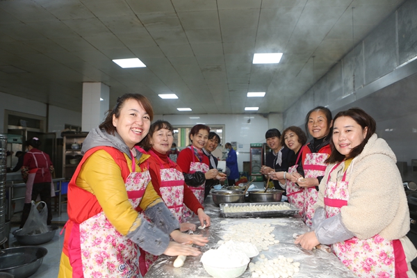 2月11日,恰逢年三十,一大早,馮礦娥和姐妹們就在欣怡食苑的后廚忙活開(kāi)來(lái)。大家系著圍裙,麻利的卷起袖管,大家齊動(dòng)手,共協(xié)作,調(diào)餡兒、和面、搟皮兒、包餃子,作為礦嫂,大家都希望把節(jié)日的祝福和家的濃情包進(jìn)這一個(gè)個(gè)寄托著團(tuán)圓之情的餃子里,讓不能回家過(guò)年的職工感受到企業(yè)大家庭的溫暖與節(jié)日的祝福。只見(jiàn)礦嫂們靈巧的雙手上,一個(gè)個(gè)潔白小巧的餃子如同大珠小珠落玉盤,一會(huì)就擺滿了案面,大家齊心協(xié)力,麻溜兒的忙碌著,后廚的工作人員還在緊張的制作蒸碗、排骨、條子肉、酥肉、丸子、包子、饅頭、花卷等春節(jié)食材,把好食品安全,豐富節(jié)日餐桌,食苑里處處洋溢著家的煙火味兒。