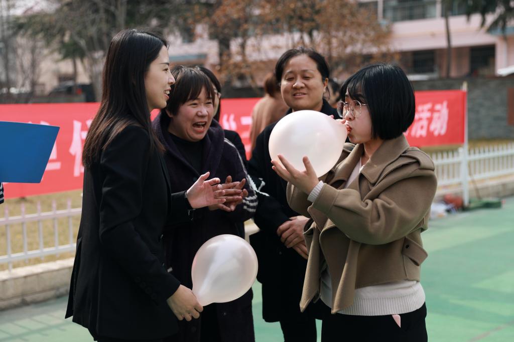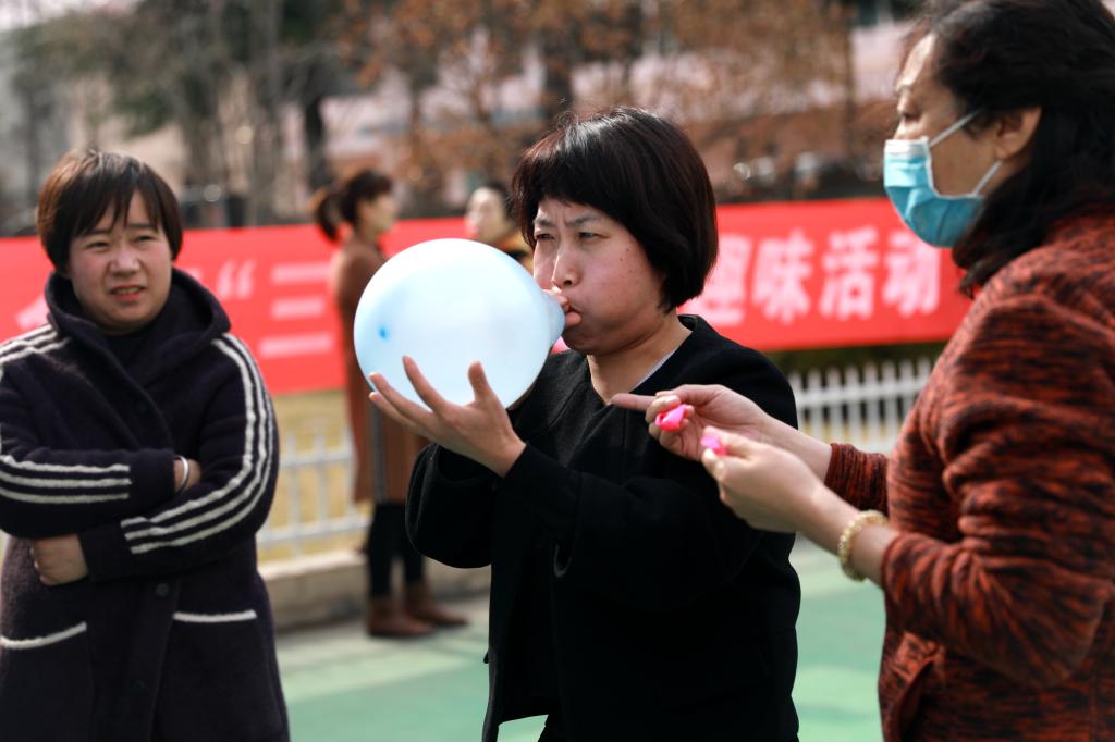 在“吹氣球”項(xiàng)目中,每?jī)擅毠ひ唤M,在一分鐘內(nèi)按要求大小吹的氣球越多算獲勝,比賽中,有的女職工鼓起腮幫但效果欠佳,有的則迅速掌握要領(lǐng),將吹好的氣球自豪的在手中揮舞,引來(lái)大家的熱烈掌聲?;顒?dòng)在此起彼伏的歡笑聲中一度將活動(dòng)推向高潮。