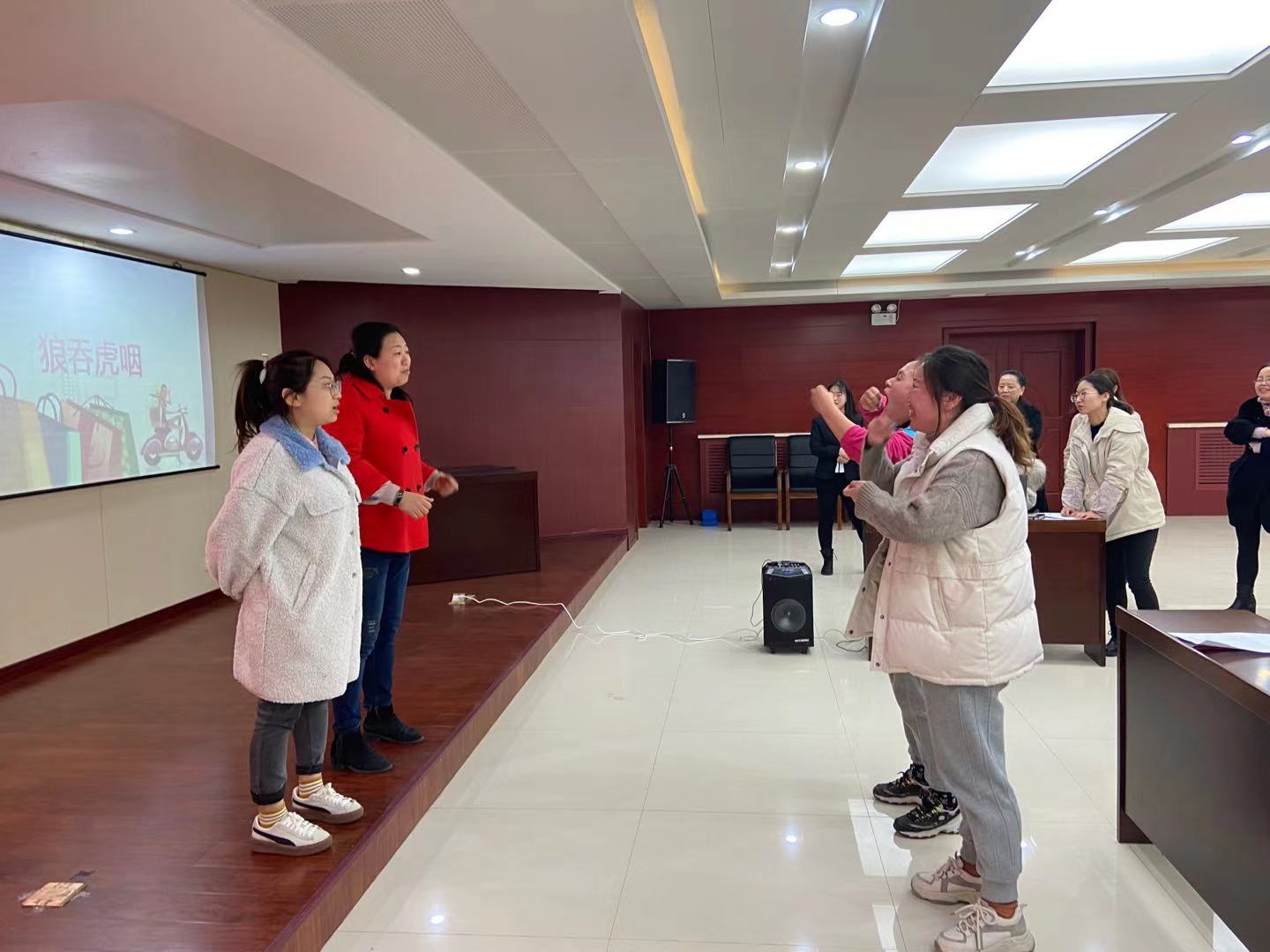 接下來“珠行萬里”,組員齊上陣,充滿緊張和激動(dòng)的心情,隨著哨聲響起,兩位女工背對(duì)背夾著氣球,奮勇向前,在“心有靈犀”“諸葛帽吃糖”游戲中,女工們利用智慧和肢體語言即興表演,向隊(duì)員傳遞信息,時(shí)而搞怪、時(shí)而激烈,將活動(dòng)現(xiàn)場(chǎng)的氣氛推向了高潮。經(jīng)過緊張而又激烈的角逐,每組游戲抉擇出第一名,并送上了小禮品,趣味游戲活動(dòng)也在大家的歡呼聲和掌聲中,完美落下帷幕。