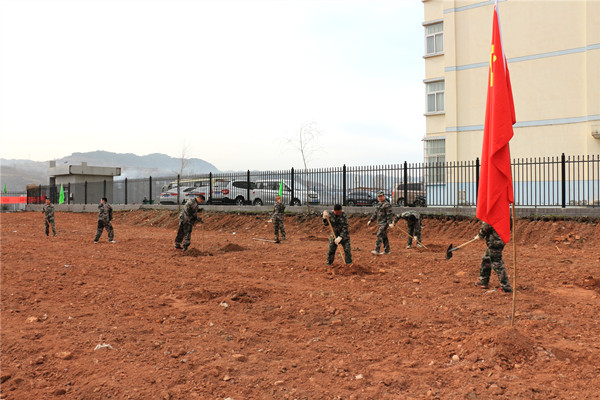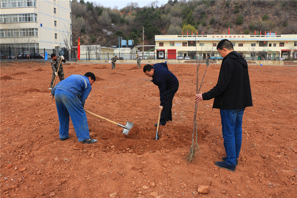 面對土質(zhì)硬、石塊多、坑難挖等難題,大家輪番上陣一锨一鎬不斷挖掘樹坑,有人彎腰跪地撿拾坑里的石頭,有人推起手推車拉運石塊,越來越多的職工家屬紛紛加入植樹隊伍,挖坑、種樹、填土、扶直、踩緊壓實、澆水、圍土,干勁十足。經(jīng)過兩個多小時的勞動,150余棵蘋果樹、柿子樹排列整齊的屹立在果園當中。