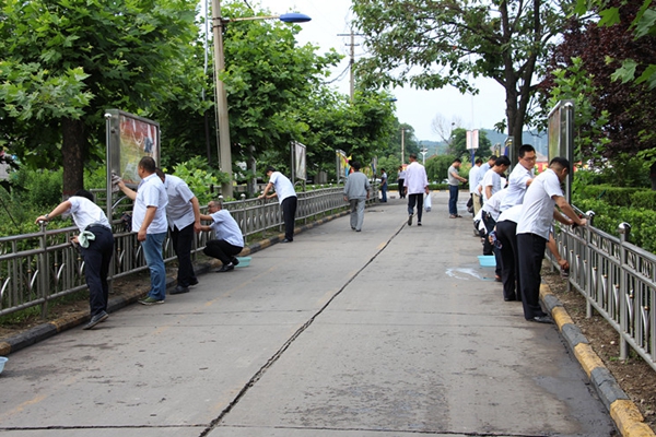 該礦以貫徹6月環(huán)保工作例會為契機,積極組織開展環(huán)保志愿者活動,深入貫徹落實上級環(huán)保會議精神,部署環(huán)保重點工作,組織進行每周環(huán)保大檢查,深入推動綠色發(fā)展,營造全礦齊參與、齊抓共管環(huán)保工作的良好氛圍。青年環(huán)保志愿者在向職工發(fā)放環(huán)保知識宣傳單時,號召廣大職工群眾積極行動起來,從一點一滴做起,樹立綠色生活理念。當天活動在辦公區(qū)、儲煤場,以及公路沿線共展出環(huán)保展板、宣傳橫幅20余幅,設立環(huán)保知識咨詢臺1個,發(fā)放環(huán)保宣傳單千余份。區(qū)隊干部職工開展義務勞動,美化環(huán)境扮靚礦區(qū)。