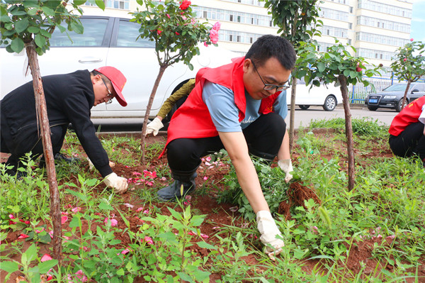 迎風(fēng)飄揚(yáng)的黨旗、身著紅色志愿服的黨員團(tuán)員點(diǎn)綴在綠意盎然的花園里,與湛藍(lán)深邃的天空融為一體,形成了一副美好畫卷。 此次清除雜草實(shí)踐活動(dòng),不僅為大家提供了交流的平臺(tái),更增強(qiáng)了干部職工的工作積極性,凝聚起了大家心往一處想,勁往一處使,打造最美職工生活區(qū)的強(qiáng)大動(dòng)力。