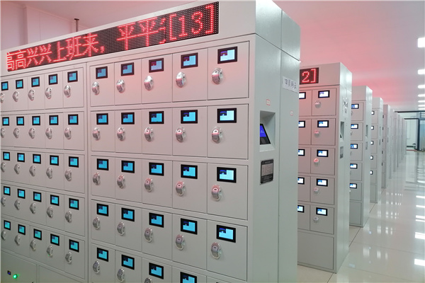 近年來,礦黨政致力于幫助解決職工工作和生活中難題,礦燈超市的正式營業(yè),在方便礦燈統(tǒng)一管理的同時(shí),減少了燈房職工勞動(dòng)強(qiáng)度。礦燈超市占地面積200平方米,14排燈柜可容納1400盞燈,職工可通過手里的電子鑰匙扣和燈柜顯示屏虹膜識(shí)別找到專屬燈箱,燈箱上的LCD顯示屏顯示了姓名、單位、編號(hào)、充電時(shí)間(取燈時(shí)間)、電量,職工在取燈時(shí)有語音提示。