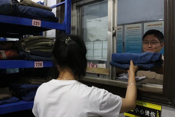 “我們提供24小時(shí)免費(fèi)服務(wù),請放心隨時(shí)來”,“褲邊已經(jīng)縫好了,您在看看合適嗎?”,玉華煤礦職工洗衣中心里,一句句關(guān)心話語,一聲聲親切問候,猶如微風(fēng)拂面,為職工送來夏日關(guān)愛。