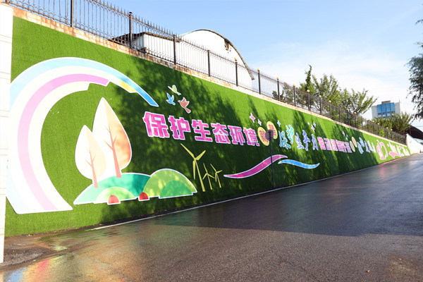 生態(tài)環(huán)保文化主題區(qū),是實(shí)施“文化靚礦”規(guī)劃的自進(jìn)礦主干道、辦公區(qū)、工業(yè)區(qū)、生活區(qū)的縱貫線當(dāng)中,是該礦在打造企業(yè)形象,黨建領(lǐng)航、礦工精神,發(fā)展愿景,視覺形象,科技創(chuàng)新,理念愿景,最美職工生活區(qū)等7個(gè)文化主題區(qū)之后的第8個(gè)文化主題區(qū)。以一道300余米長(zhǎng),500多平方的環(huán)保文化長(zhǎng)廊作為主題區(qū)的主體,通過“高清照片+理念目標(biāo)”的方式,將礦井生態(tài)環(huán)境建設(shè)成果和堅(jiān)定綠色發(fā)展的理念愿景,徐徐展示在80余米長(zhǎng)的護(hù)坡墻體和200余米的防風(fēng)墻面上,與“最美職工生活區(qū)”隔湖相望,與青山綠水碧空交相呼應(yīng),形成“人在景中、景在畫中”的新畫卷,引領(lǐng)礦區(qū)綠色低碳生活,持續(xù)推進(jìn)礦井綠色發(fā)展。