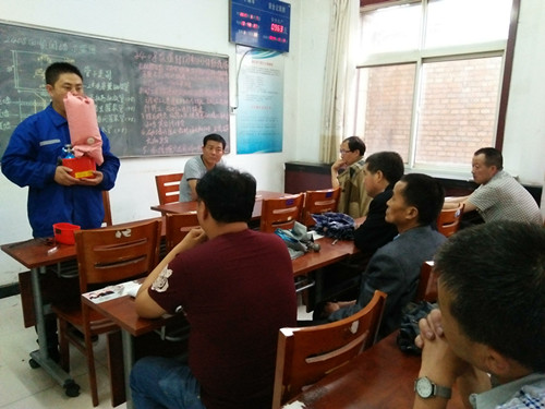 該礦組織自救器維修管理人員每天利用班前會(huì)時(shí)間,深入基層區(qū)隊(duì)向干部職工詳細(xì)講解佩戴自救器的重要性和原理構(gòu)造,以及ZYX隔絕式壓縮氧自救器使用方法。同時(shí),要求每名職工進(jìn)行現(xiàn)場(chǎng)操作佩戴,保證人人能夠準(zhǔn)確熟練的使用自救器,達(dá)到全員培訓(xùn),個(gè)個(gè)過關(guān)的目的。使職工深刻認(rèn)識(shí)到自救器不再是掛在身上的負(fù)擔(dān),而是危急時(shí)刻的“生命保護(hù)傘”,在遇有突發(fā)情況時(shí),能在最短時(shí)間內(nèi)進(jìn)行佩戴自救,以達(dá)到快速逃生的目的,保護(hù)職工生命安全。