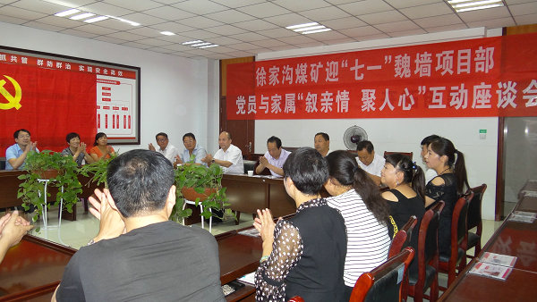 為慶祝建黨96周年,認(rèn)真貫徹落實(shí)公司黨委書記、執(zhí)行董事王蓬近日到徐家溝煤礦調(diào)研時(shí)的指示精神,6月25日,徐家溝煤礦在魏墻煤礦項(xiàng)目部舉行了迎“七一”黨員與家屬“敘親情、聚人心”互動(dòng)座談會(huì)。外出黨員代表與家屬面對(duì)面敘親情、知礦情、互理解、聚人心,凝心聚力,砥礪奮進(jìn),共同為企業(yè)走出去發(fā)展做出新貢獻(xiàn)。