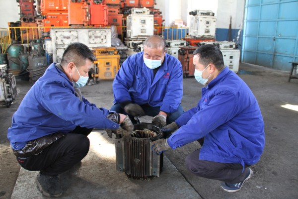“團(tuán)隊(duì)技術(shù)好了才是真的好” 看圖紙、找原因、排故障,一個(gè)器件一個(gè)器件排查、一條線路一條線路梳理,微弱的燈光照在幾名礦工臉上,汗水一滴滴掉落下來,最終經(jīng)過排查發(fā)現(xiàn)是一個(gè)電子元件松動(dòng),經(jīng)過復(fù)位之后故障成功排除。這是機(jī)電車間電工組組長趙軍方帶領(lǐng)徒弟們排查檢修開關(guān)故障的工作場景。 每次維修設(shè)備時(shí),趙軍方都要把徒弟們帶在身邊,讓他們在排查隱患中熟悉設(shè)備原理,在拆卸安裝中了解設(shè)備構(gòu)造,在解決問題中總結(jié)提升,他始終認(rèn)為“一個(gè)人技術(shù)好了不算好,整個(gè)團(tuán)隊(duì)技術(shù)好了才是真的好?!?“趙哥,不但是我們的班長、師傅,還是我們的‘百度百科’,沒有他不知道的問題,也沒有他解決不了的故障,有他在,我們干活心里都有數(shù)了?!币宦毠じ吲d地告訴筆者。