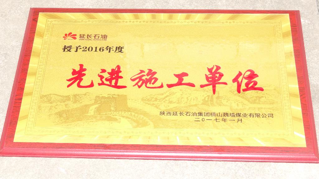 近日,徐家溝駐魏墻煤礦項目部榮獲延長石油礦業(yè)魏墻煤業(yè)公司授予“先進施工單位”稱號。