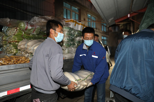 3月17日晚,一輛載滿新鮮蔬菜的物資保供貨運(yùn)車通過“綠色通道”到達(dá)玉華煤礦。貨車司機(jī)打開車廂同后勤人員迅速搭起一條流水線,齊心協(xié)力將7000斤品種豐富的“愛心蔬菜”搬運(yùn)至該礦臨時儲存點(diǎn)。后勤人員在高興卸運(yùn)貨物同時,同樣被送新鮮蔬菜的這位愛心人士凡人善舉而感動。