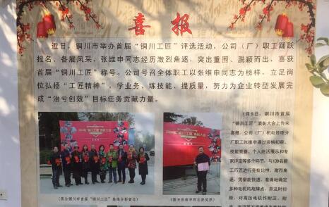 近日,一幅制作精美,反映“銅川工匠”參賽及獲獎(jiǎng)選手的喜報(bào),引來眾多職工在機(jī)電分公司(廠)公示欄前駐足圍觀,再次引發(fā)職工和往來客戶對(duì)該單位“銅川工匠”參賽職工的關(guān)心關(guān)注,大家對(duì)參賽者的絕活技能贊不絕口,羨慕敬佩之情溢于言表。