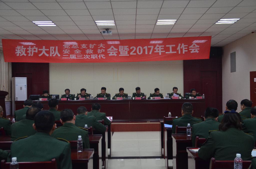 1月25日上午,救護(hù)大隊(duì)黨總支擴(kuò)大會(huì)、二屆三次職代會(huì)、安全救護(hù)會(huì)暨2017年工作會(huì)在機(jī)關(guān)六樓會(huì)議室召開。會(huì)議全面分析大隊(duì)2017年隊(duì)伍發(fā)展面臨的挑戰(zhàn)與機(jī)遇,明確2017年工作目標(biāo)和工作思路,聚合發(fā)展動(dòng)力,突出發(fā)展優(yōu)勢(shì),深入推進(jìn)治虧創(chuàng)效和隊(duì)伍訓(xùn)練工作,嚴(yán)格抓好安全管理和黨建工作,為全面完成年度目標(biāo)任務(wù)和推進(jìn)隊(duì)伍持續(xù)穩(wěn)定發(fā)展提振士氣、凝聚人心。救護(hù)大隊(duì)黨政領(lǐng)導(dǎo)及各單位負(fù)責(zé)人、職工代表等40余人參加了大會(huì)。
