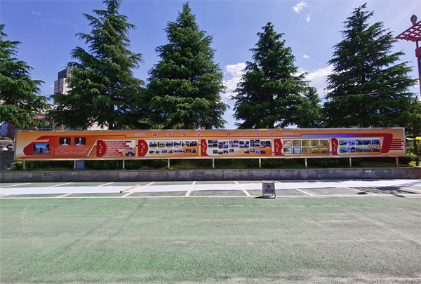 礦井對(duì)企業(yè)文化墻的觀(guān)賞效果做了規(guī)劃性設(shè)計(jì),布局統(tǒng)一設(shè)計(jì)風(fēng)格,劃分不同專(zhuān)區(qū),設(shè)置版塊主題,采用紅色主色調(diào)輔以黃色彰顯朝氣,整體以飛馳列車(chē)造型,寓意礦井團(tuán)結(jié)奮進(jìn)、銳意進(jìn)取、奮斗拼搏的文化精神,把“五好五強(qiáng)”核心理念以立體的形象展現(xiàn),讓文化“看得見(jiàn)”“摸得著”,使文化精髓在潛移默化中深植內(nèi)心深處,真正發(fā)揮文化引領(lǐng)優(yōu)勢(shì)。