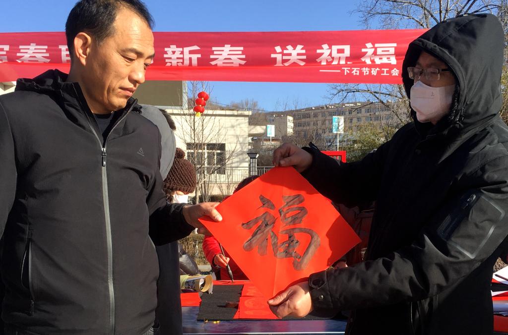 虎嘯群山增瑞氣,玉兔迎春?jiǎn)⑿鲁?;和順一門有百福,平安二字值千金......“這字真漂亮!寫的春聯(lián)就是比買的印刷品好,讓人真實(shí)地感受到了濃濃的年味兒?!?月19日,下石節(jié)礦工會(huì)在欣怡廣場(chǎng)開展了“寫春聯(lián)迎新春送祝?!被顒?dòng),為全礦職工家屬送上新春的問候和深深的祝福。