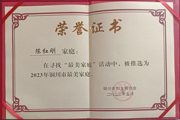近日,銅川市2023年“最美家庭”評選結(jié)果出爐,陳家山礦陳紅剛家庭喜獲銅川市“最美家庭”榮譽(yù)稱號。