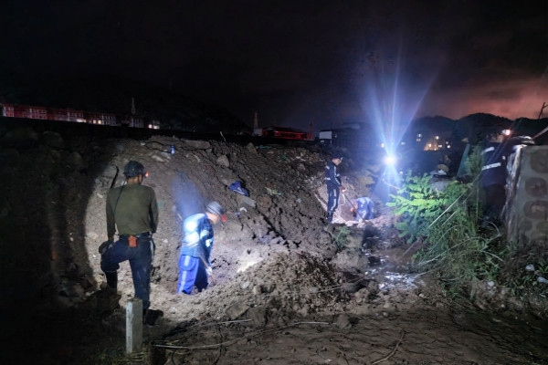 搶修過(guò)程中,按照職責(zé)分工忙碌不停,搶修現(xiàn)場(chǎng)爭(zhēng)分奪秒,各項(xiàng)工作緊張有序地進(jìn)行著。機(jī)電部負(fù)責(zé)現(xiàn)場(chǎng)指導(dǎo),安全監(jiān)察部負(fù)責(zé)現(xiàn)場(chǎng)安全監(jiān)管以及河水的水位監(jiān)測(cè),保證施工人員安全,機(jī)電隊(duì)、綜掘三隊(duì)共30余人由隊(duì)長(zhǎng)帶領(lǐng)在河道里挖基坑固定地錨,機(jī)電車間人員迅速將沙子、水泥等材料通過(guò)叉車、卡車運(yùn)至橋頭,然后人工運(yùn)送到施工現(xiàn)場(chǎng)。