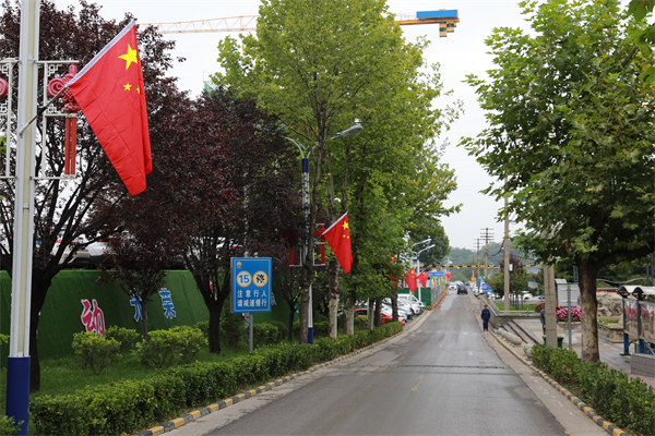 走在礦井主干道路、辦公區(qū)、工業(yè)區(qū)、主副井塔和生活區(qū),建筑物門廳和沿線路燈懸掛著一面面五星紅旗迎風招展,職工食堂、職工公寓等樓體懸掛的彩旗隨風飄揚,“喜迎中秋、歡度國慶”的燈籠高掛。放眼望去,火紅一片,職工群眾堅守崗位安全生產的身影融入其中,組成一道亮麗風景。