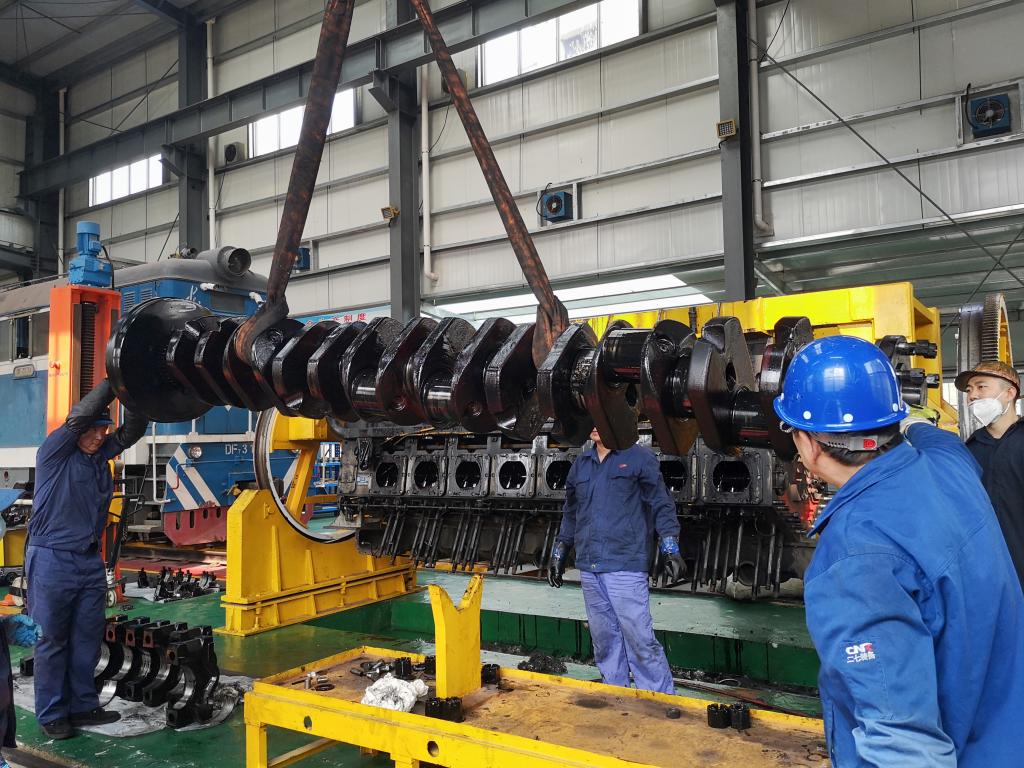 進(jìn)入該分公司檢修車(chē)間,到處都是職工忙碌的身影,順著“叮叮當(dāng)當(dāng)”的敲擊聲望去,映入眼簾的是一個(gè)火車(chē)頭,它穩(wěn)穩(wěn)的停在車(chē)間的軌道上,檢修工們正認(rèn)真的對(duì)車(chē)上的各個(gè)部件進(jìn)行全面的檢查。只見(jiàn)他們一手拿著扳手,一手拿著鉗子,時(shí)而鉆入、鉆出,時(shí)而攀上爬下,忙碌地在機(jī)車(chē)上精檢細(xì)修,每一個(gè)動(dòng)作都有條不紊。