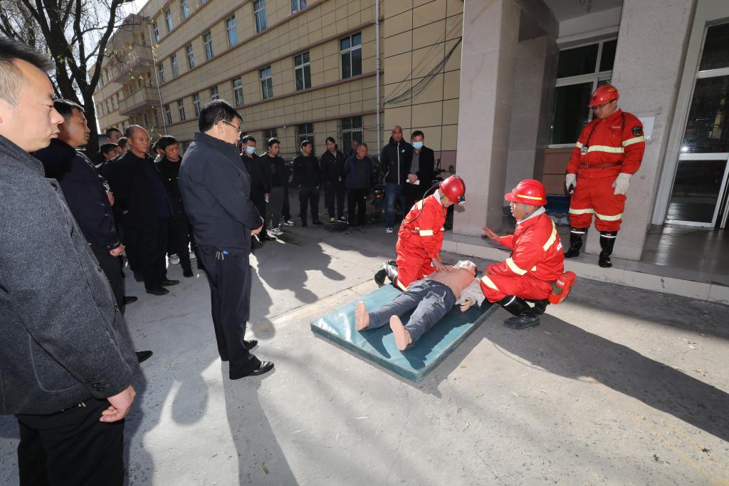 上午11時(shí),隨著現(xiàn)場總指揮一聲令下,消防應(yīng)急演練正式拉開序幕。此次演練采用模擬事故現(xiàn)場實(shí)戰(zhàn)練兵的方式,模擬礦1#職工公寓內(nèi)223室意外起火,火勢迅速蔓延,直接威脅到樓內(nèi)其他職工的生命安全財(cái)產(chǎn)安全。值班人員發(fā)現(xiàn)火情后第一時(shí)間拉響撤離警報(bào),快速向調(diào)度指揮中心匯報(bào)火災(zāi)險(xiǎn)情相關(guān)信息的同時(shí),積極組織開展自救互救工作,科學(xué)引導(dǎo)受災(zāi)區(qū)域職工有序撤離單身樓在安全地點(diǎn)待命。該礦緊急啟動地面火災(zāi)事故應(yīng)急救援預(yù)案,成立應(yīng)急救援指揮部,專業(yè)技術(shù)組、搶險(xiǎn)救災(zāi)組、醫(yī)療救治組、治安保衛(wèi)組、后勤保障組、善后處理組、對外協(xié)調(diào)組快速響應(yīng),迅速到位,火速趕赴現(xiàn)場,有序開展撤退及救援工作。