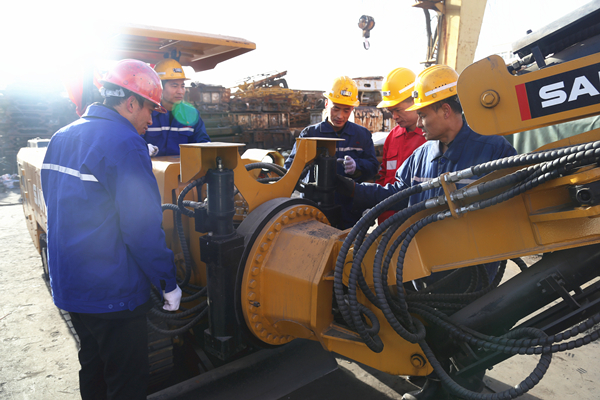 培訓(xùn)現(xiàn)場(chǎng),職工們逐一上機(jī)進(jìn)行操作,師傅們針對(duì)他們操作過(guò)程中存在的不規(guī)范操作進(jìn)行手把手指導(dǎo)校正,并就巷道修復(fù)機(jī)在巷道內(nèi)如何實(shí)現(xiàn)對(duì)大塊巖石、煤塊進(jìn)行破碎,清挖水溝、臥底、破巖及平整巷道等多種操作方法進(jìn)行詳細(xì)講解和演示,對(duì)巷修機(jī)使用過(guò)程中容易出現(xiàn)的故障、問(wèn)題及排除方法進(jìn)行了解答。