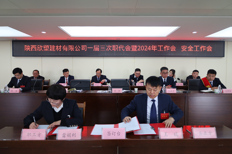 會(huì)議期間,該公司負(fù)責(zé)人與各部門、車間負(fù)責(zé)人簽訂了《安全生產(chǎn)責(zé)任狀》,企業(yè)方和職工方代表簽訂了《2024年工資集體合同》《2024—2025年集體合同》《2024—2025年女職工權(quán)益保護(hù)專項(xiàng)集體合同》。
