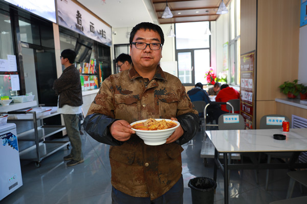 中午12點,不少職工來到餐廳,明廚亮灶下近距離觀看廚師烹制“火出圈”的麻辣燙,葷素搭配,自行挑選,稱重計量,高湯冒熟后再加上香味撲鼻的油潑辣子,一口下去“熱辣滾燙”,使人胃口大開,價格公道實惠,職工直呼“快來嘗鮮,根本停不下來”。另一窗口,一個面劑子在廚師手中搓搓、揉揉再抻一抻,不大會,一碗“一清、二黃、三白、四紅、五綠”的牛肉面就被端上飯桌,讓人垂涎欲滴。