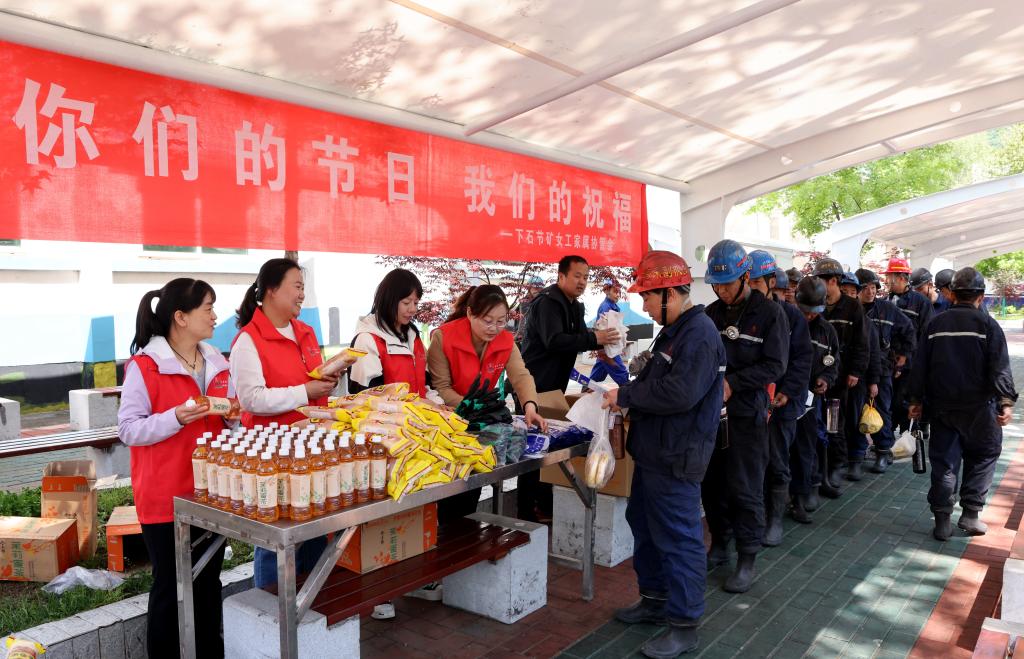 “師傅辛苦了!”“師傅,井下作業(yè)注意安全!”……活動(dòng)現(xiàn)場(chǎng),女工協(xié)管員們將精心準(zhǔn)備的面包、飲料、手套、鞋墊等慰問品送到職工手中,并送上節(jié)日祝福,叮囑他們時(shí)刻緊繃安全弦,堅(jiān)持做好自主保安和互助保安。