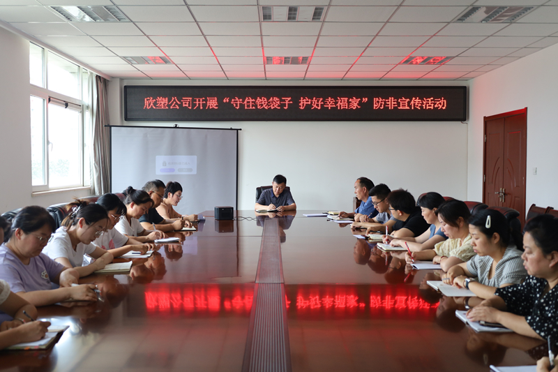 6月份以來(lái),欣塑公司深入開(kāi)展“守住錢(qián)袋子 護(hù)好幸福家”防范非法集資宣傳教育活動(dòng),厚植全員防非、主動(dòng)拒非的良好氛圍,切實(shí)守護(hù)好干部職工的“錢(qián)袋子”。