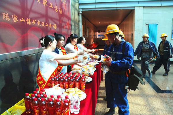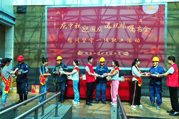 “中秋節(jié)快樂,井下工作時注意安全!”“節(jié)日快樂,祝你工作順利,闔家團(tuán)圓!”伴隨著一句句祝福,女工協(xié)管員們、團(tuán)員青年志愿者把象征著團(tuán)圓的月餅、面包、雞蛋、冰紅茶等節(jié)日慰問品送到了職工們手中,叮囑他們要按章操作,安全生產(chǎn)。