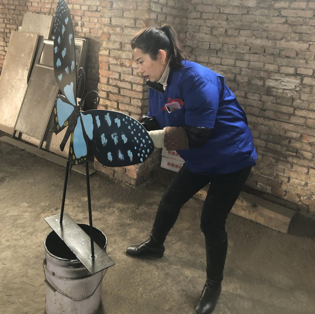 “這些鐵板畫真是下了一番功夫,從開始設(shè)計(jì)再到涂色,直到完成一個(gè)個(gè)生動(dòng)形象的作品?!痹摴句N售部李英有感而發(fā)。