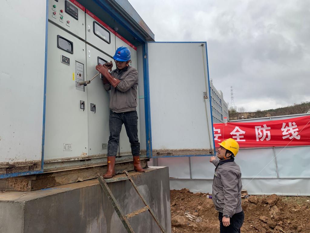 該公司為高質(zhì)量完成彬長(zhǎng)孟村礦業(yè)煤層氣項(xiàng)目部戶外箱變安裝工作,投入最富經(jīng)驗(yàn)的運(yùn)行維護(hù)部管理人員和技術(shù)人員11名,有計(jì)劃、有步驟、有秩序地對(duì)該項(xiàng)目進(jìn)行安裝、調(diào)試和試驗(yàn)。歷時(shí)4天,共敷設(shè)YJV22-3X50高壓電纜460米,完成電纜頭制作、電纜試驗(yàn)、變壓器試驗(yàn)、電纜頭安裝、1000kva箱變吊運(yùn)安裝等工作后,對(duì)箱變及配套設(shè)備進(jìn)行了全面檢查,確保電纜絕緣、開關(guān)位置、控制電源等無異常后,成功送電。