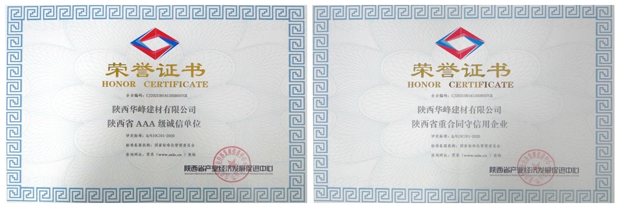近日,從陜西省產(chǎn)業(yè)經(jīng)濟(jì)發(fā)展促進(jìn)中心獲悉,華峰公司被評(píng)為2021年度陜西省“重合同守信用企業(yè)”及“陜西省AAA級(jí)誠信單位”。榮譽(yù)的獲得,是公司高度重視合同管理和社會(huì)誠信體系建設(shè)的結(jié)果,為公司今后持續(xù)健康、快速發(fā)展提供了更加有力的信譽(yù)保障。