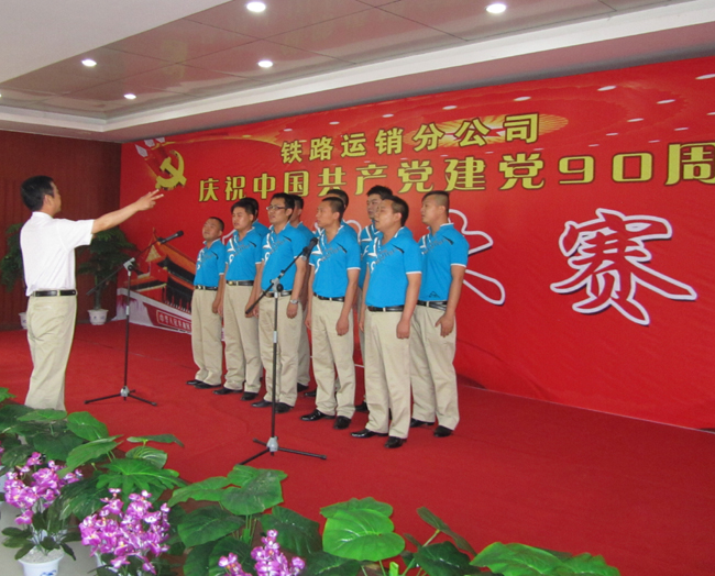 6月29日下午,鐵運(yùn)公司紀(jì)念建黨90周年“紅歌大家唱”歌詠比賽在公司激情演繹,來自11個基層黨支部的100余名職工代表參加,公司黨政領(lǐng)導(dǎo)與干部職工一起共享這場視聽盛宴。