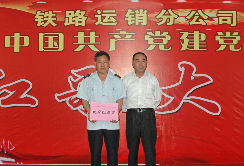 公司黨委書記高德富與獲得優(yōu)秀組織獎的機(jī)關(guān)黨支部書記合影