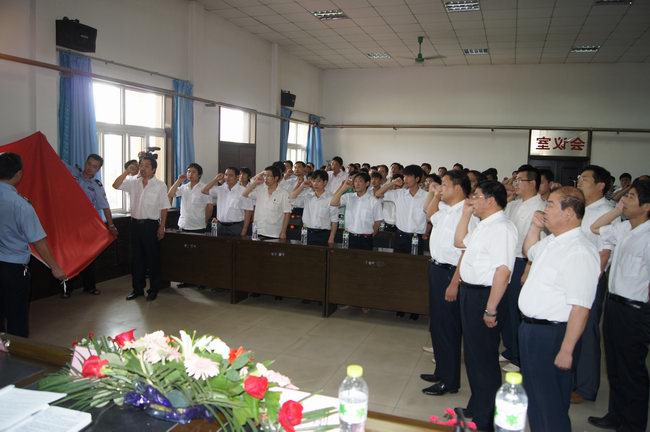 “我志愿加入中國共產黨,擁護黨的綱領,維護黨的章程……”6月30日下午,銅川礦業(yè)公司金華山礦100余名共產黨員在四樓會議室,面對黨旗莊嚴高舉右手并握拳,一字一句地大聲宣讀入黨誓詞。此次重溫入黨誓詞活動是金華山礦黨委慶祝建黨90周年召開黨員大會的其中一項議程,意在讓黨員回味當年入黨的情景,明確黨員的責任,肩負起黨員的義務,以黨員的標準嚴格要求自己,發(fā)揮黨員先鋒模范帶頭作用,團結和帶領全礦干部職工為實現局礦安全生產任務目標再立新功,再做先貢獻。(圖為全體黨員重溫入黨誓詞情景)