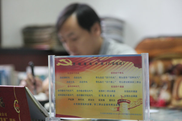 據(jù)悉,為進一步落實深化黨風(fēng)廉政教育,強化黨員干部廉潔自律意識,該礦紀(jì)委圍繞“改進工作作風(fēng),密切聯(lián)系群眾”主題,設(shè)計制作了這款“廉政提醒桌簽”。該桌簽一面以貫徹落實中央“八項規(guī)定”和公司“改進四個作風(fēng)、堅持四個帶頭、倡導(dǎo)四種風(fēng)氣,實現(xiàn)四種滿意”為內(nèi)容,另一面則是預(yù)防職務(wù)犯罪,算好七筆賬、走好人生路為內(nèi)容的警示提醒,使廣大干部在日常工作中對照桌簽,做到警鐘長鳴,時刻保持清醒頭腦,警示自己堅守“廉潔紅線”不越界,潛移默化間接受廉潔教育,在工作中以高度的責(zé)任感和使命感嚴(yán)格要求自己,不斷改進工作作風(fēng),密切與職工群眾聯(lián)系,為企業(yè)的和諧發(fā)展貢獻自己應(yīng)有的力量。