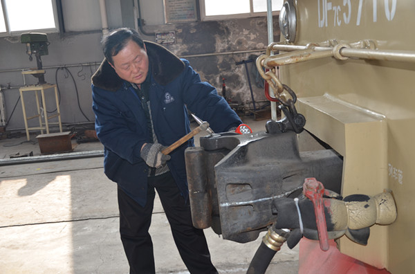 然而,令人意想不到的是張玉功對此并沒有泄氣,也沒有埋怨,而是在學(xué)習(xí)技術(shù)方面下了不少功夫,不懂就問,不會就學(xué),很快掌握了焚火投煤技術(shù)。有多少次蒸汽機車爐條出槽,火一壓就鉆入爐子內(nèi)去撬爐條,身上曾被燙了多少泡已經(jīng)數(shù)不清了。他不僅僅自己技術(shù)好,也時常當(dāng)起了“老師”,遇到問題,就找鐵路部門瑤曲車站的“老師傅”請教,自己會的,毫無保留地傳授給大家,自己還繪制圖紙,復(fù)印擴大,貼在墻上,與大家共享。
