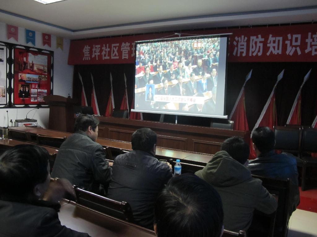 實(shí)業(yè)焦坪社區(qū)組織干部職工觀看全國(guó)人大三次會(huì)議開(kāi)幕式