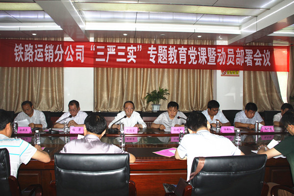 6月10日上午,鐵運(yùn)分公司召開“三嚴(yán)三實(shí)”專題黨課暨動(dòng)員部署會(huì)議,傳達(dá)貫徹礦業(yè)公司“三嚴(yán)三實(shí)”會(huì)議精神,對(duì)本單位“三嚴(yán)三實(shí)”專題教育進(jìn)行動(dòng)員部署。該分公司黨政各領(lǐng)導(dǎo)、副總、副科級(jí)以上領(lǐng)導(dǎo)干部50余人參加會(huì)議,會(huì)議由該分公司經(jīng)理孫建軍主持。