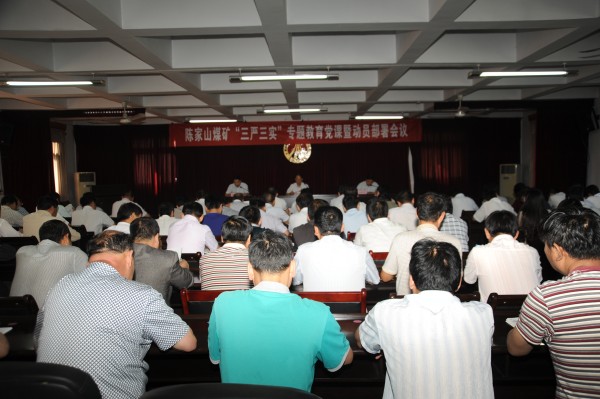 6月11日上午,陳家山礦召開(kāi)“三嚴(yán)三實(shí)”專題教育黨課暨動(dòng)員部署會(huì)議。會(huì)議主要目的是學(xué)習(xí)貫徹上級(jí)黨組織的有關(guān)工作部署,進(jìn)行專題黨課學(xué)習(xí)輔導(dǎo),安排部署“三嚴(yán)三實(shí)”專題教育。該礦副總以上領(lǐng)導(dǎo)、各科室負(fù)責(zé)人以上及基層單位黨員干部100余人參加了會(huì)議。會(huì)議由礦長(zhǎng)邢彥民主持。