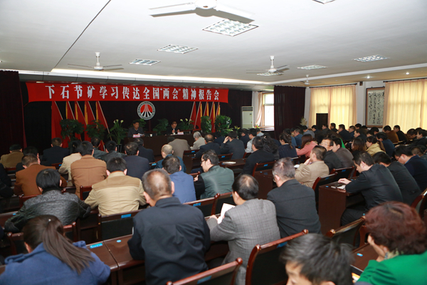 全國(guó)“兩會(huì)”勝利閉幕后,赴京參加十二屆全國(guó)人大四次會(huì)議的全國(guó)人大代表、下石節(jié)礦工會(huì)副主席徐群賢回到下石節(jié)礦,在該礦傳達(dá)宣傳“兩會(huì)”精神,將“兩會(huì)”盛況、“兩會(huì)”聲音和“兩會(huì)”見(jiàn)聞傳達(dá)到了礦工兄弟中。