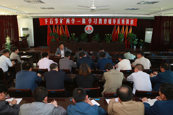 5月24日,下石節(jié)礦舉辦“兩學(xué)一做”學(xué)習(xí)教育輔導(dǎo)員培訓(xùn)班,引導(dǎo)各級(jí)黨組織和黨員干部堅(jiān)持先學(xué)一步,先行一步,抓在日常,嚴(yán)在經(jīng)常,發(fā)揮模范帶頭作用,推動(dòng)“兩學(xué)一做”學(xué)習(xí)教育工作不斷向縱深發(fā)展。