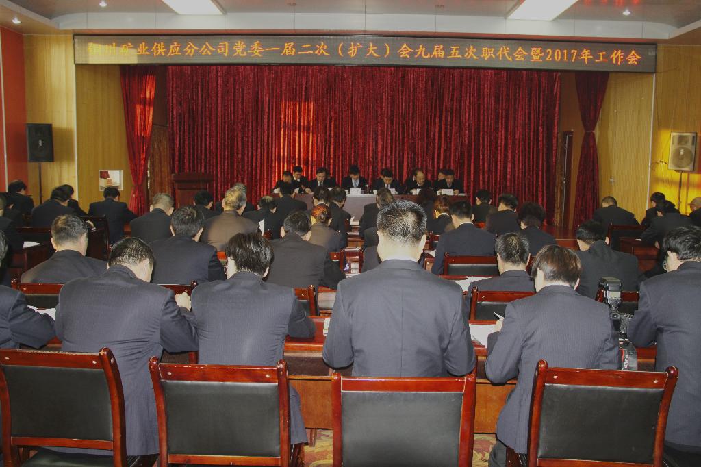 1月19日至20日,物資供應(yīng)分公司黨委一屆二次(擴(kuò)大)會(huì)、九屆五次職代會(huì)暨2017年度工作會(huì)在分公司五樓會(huì)議室召開,該分公司領(lǐng)導(dǎo)和黨員職工代表參加了會(huì)議。會(huì)議的主要任務(wù)是:深入貫徹落實(shí)黨的十八屆歷次全會(huì)以及上級(jí)各項(xiàng)工作部署,回顧總結(jié)2016年工作,研究分析面臨形勢(shì),安排部署了2017年目標(biāo)任務(wù),動(dòng)員公司各級(jí)組織和廣大干部職工,統(tǒng)一思想,堅(jiān)定信心,保安全、保穩(wěn)定、保民生,謀發(fā)展,為建設(shè)銅煤特色現(xiàn)代物流平臺(tái)而砥礪奮斗。同時(shí),會(huì)上頒發(fā)了相關(guān)配套管理辦法。