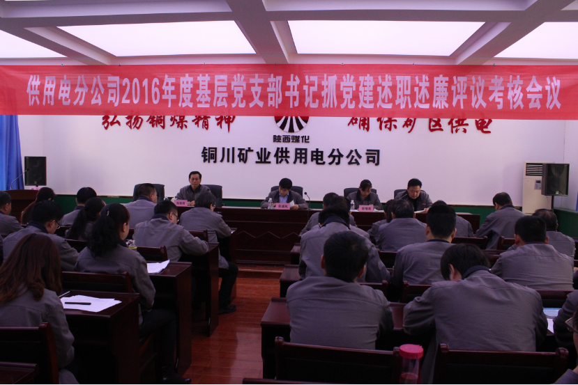 近日,供用電分公司召開2016年度黨支部書記抓黨建述職述廉評議考核會,基層各黨支部書記對過去一年里的履職盡責情況進行了匯報,該分公司領導、各部門負責人及黨員和職工代表共30余人參加了會議。