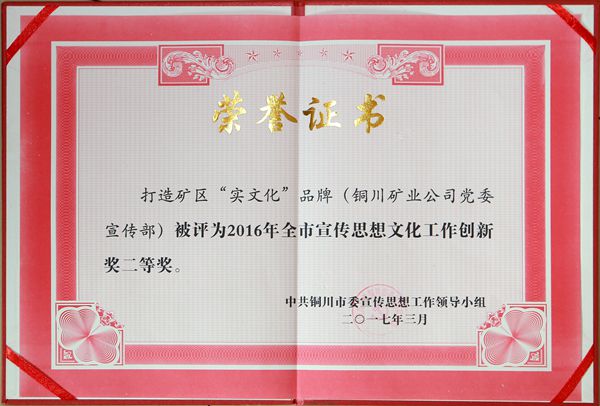 “天下萬物,皆成于實(shí)?!毕率?jié)礦始終堅(jiān)持“文化強(qiáng)企”戰(zhàn)略,打造獨(dú)具特色的“實(shí)·文化”品牌,將企業(yè)文化與安全、生產(chǎn)、經(jīng)營(yíng)、服務(wù)完美融合,以文化軟實(shí)力全面提升企業(yè)發(fā)展硬實(shí)力。在3月9日召開的銅川市宣傳思想文化工作會(huì)上傳來喜訊,下石節(jié)礦“實(shí)·文化”品牌被市委宣傳思想工作領(lǐng)導(dǎo)小組評(píng)為2016年全市宣傳思想文化工作創(chuàng)新獎(jiǎng)二等獎(jiǎng)。