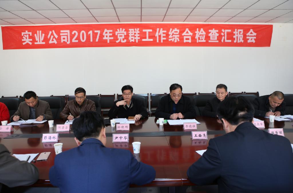 12月11日,礦業(yè)公司(局)黨群工作綜合檢查組李德強(qiáng)一行蒞臨實(shí)業(yè)公司,對(duì)2017年黨群工作進(jìn)行綜合檢查考核,實(shí)業(yè)公司班子成員及相關(guān)部門部長(zhǎng)參加了匯報(bào)會(huì)。檢查采取聽匯報(bào)、查資料、召開座談會(huì)、“三項(xiàng)機(jī)制”民主測(cè)評(píng)領(lǐng)導(dǎo)班子和領(lǐng)導(dǎo)人員等形式進(jìn)行。