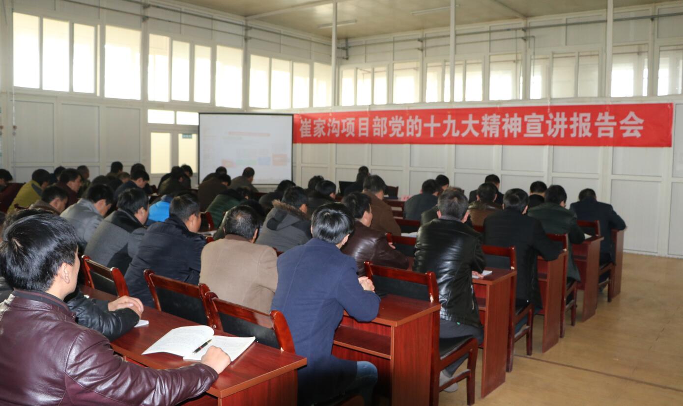 12月18日下午,公司宣講團成員公司黨委組織部副處級組織員王泰峰到崔家溝項目部宣講黨的十九大精神,項目部黨委中心組成員及廣大黨員干部職工約90余人聽取了宣講報告。報告會由該項目部黨委書記張宏軍主持。