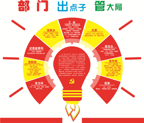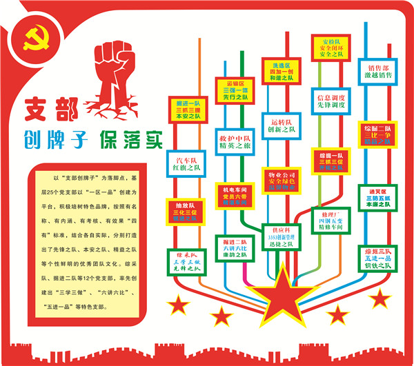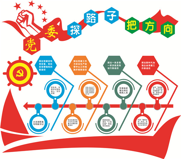 “黨委探路子”把握企業(yè)政治方向。依據(jù)黨建工作現(xiàn)狀與企業(yè)改革發(fā)展的現(xiàn)實需求,先后探尋出新時代加強企業(yè)黨建工作;一崗多責、一職多能高效運行;黨建工作與中心工作深度結(jié)合、相融并驅(qū);黨建定性變定量、軟任務變硬指標新途徑等4條涵蓋8方面的有質(zhì)可控、有量可度、同步提升的黨建工作新路子。推行為“大支部”配備“專職支部副書記”、基層支部書記、區(qū)隊長“雙向進入,交叉任職”制度,全面落實了“一崗雙責”,有效破解了機關(guān)黨建“燈下黑”、基層黨建工作落實不力等難題?!安块T出點子”管控改革發(fā)展大局。堅持黨群部門每季度、基層黨支部每半年推出一項創(chuàng)新項目,近年來先后推出“三強化三提高”、“一樹三抓六落實”、將“逢查必考”納入黨建綜合考核等創(chuàng)新項目50余項,有效提升了黨建工作水平?!爸Р縿?chuàng)牌子”保證決策部署落實。以“一區(qū)一品”創(chuàng)建為載體,先后打造出先鋒之隊、鋼鐵之隊、廉韻之隊等個性鮮明、認知度高、歸屬感強的優(yōu)秀團隊;綜采隊、掘進二隊、通滅區(qū)等12個黨支部,率先提煉出“三學三做”“六講六比”“三抓五防”等獨具特色、充滿活力、富有效力的支部品牌。為24個支部配齊電腦,為18個支部配備投影儀等硬件設施,完成區(qū)隊學習室的粉刷、桌椅更新;將區(qū)隊學習室打造成集黨政工團組織生活、日?;顒印嗲皩W習等多功能工作陣地,形成黨員承諾、區(qū)隊榮譽的墻壁文化,安全寄語、廉潔警語、員工心語的書桌文化,特色PPT、解說詞的品牌文化,培育出一大批有影響力的黨建品牌。