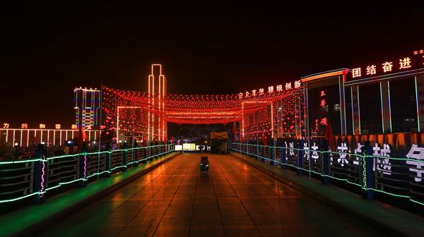 “忽如一夜春風(fēng)來,千樹萬樹梨花開”青松、灌木披上“繁星點(diǎn)點(diǎn)”,高桿路燈蜿蜒,中國結(jié)點(diǎn)綴,玉北湖波光粼粼,環(huán)抱群山白雪皚皚,一輪明月映煤海,十里礦區(qū)慶佳節(jié)。